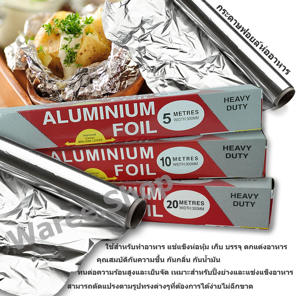 ฟอยล์ห่ออาหาร ขนาด 5 10 20 เมตร ฟอยล์เงินห่ออาหาร อลูมิเนียมฟอยล์ ฟอยล์อลูมิเนียม กระดาษฟอยล์ อลูมิเนียมสำหรับทำอาหาร