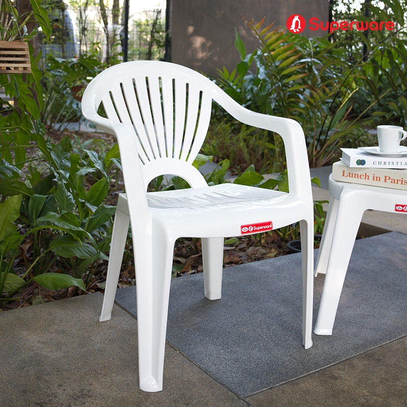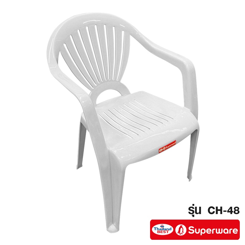 Srithai Superware เก้าอี้พลาสติก มีพนักพิง ที่เท้าแขน ที่นั่ง สำหรับ สนามหญ้า นั่งเล่น ห้องทานข้าว รุ่น CH-48