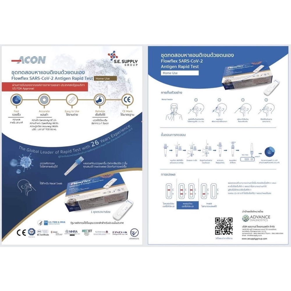 Flowflex ชุดตรวจโควิค ATK ACON Flowflex (1 กล่อง1เทส) แบบจมูก กล่องสีน้ำเงิน