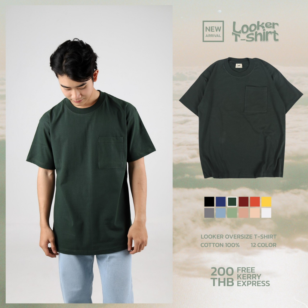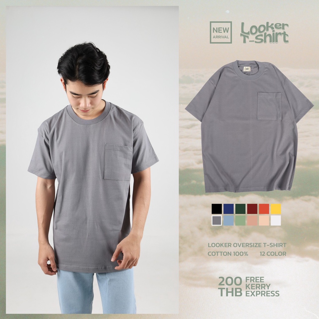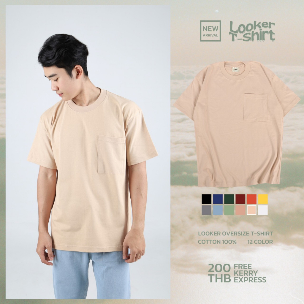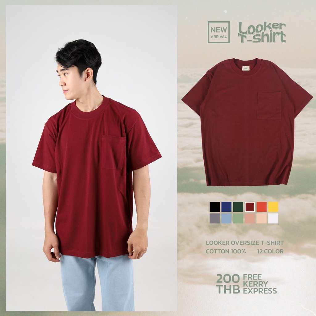 LOOKER - เสื้อยืดสีพื้นกระเป๋าอกซ้าย ผ้าCottonหนานุ่ม