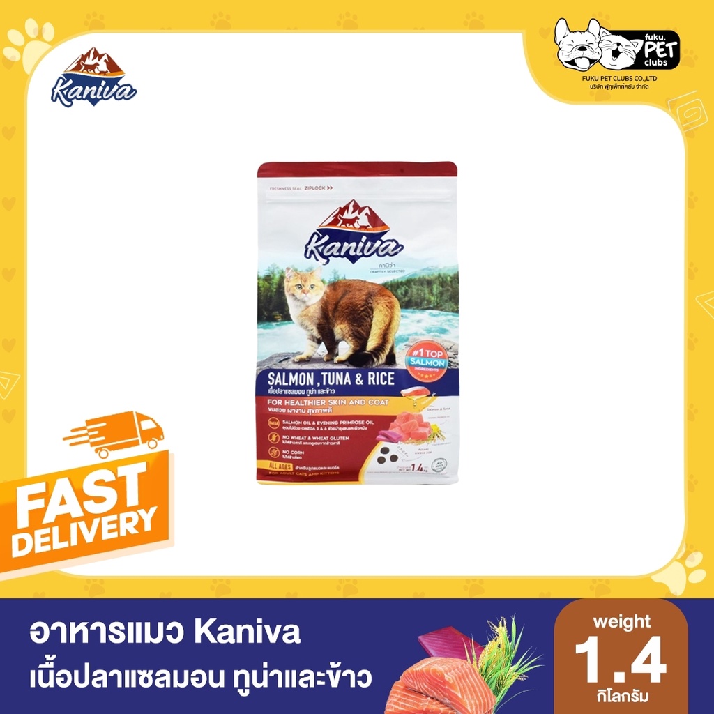 Kaniva (คานิว่า) อาหารแมว สูตรปลาแซลมอน ทูน่า และข้าว (1.4 กิโลกรัม/ 1ถุง)
