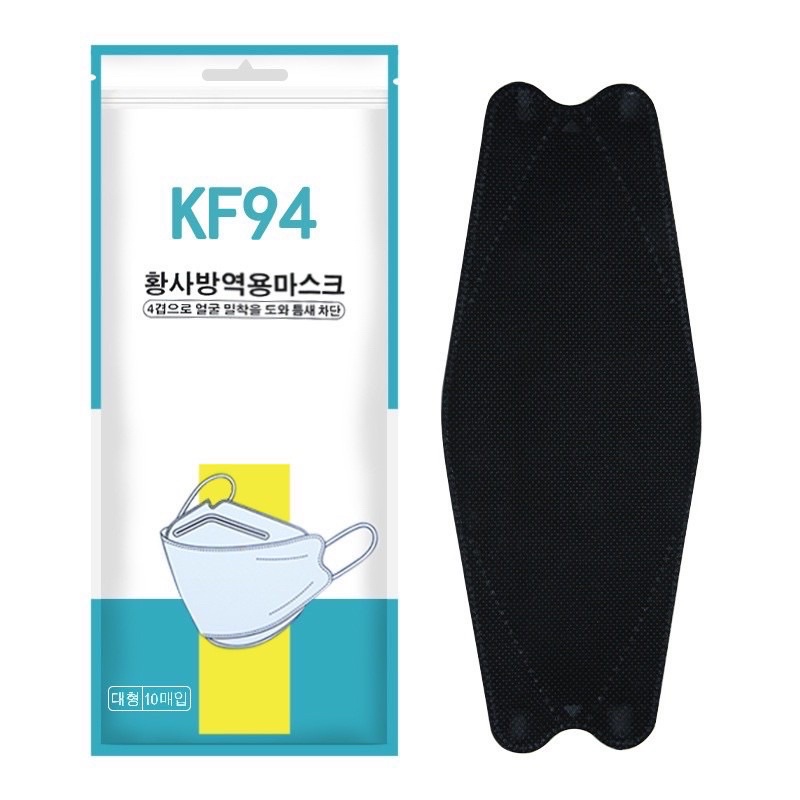 (1แพ็ค10ชิ้น)หน้ากากอนามัย3dทรงแมสเกาหลีKF94ขาว/ดำงานหนา4ชั้น🇰🇷