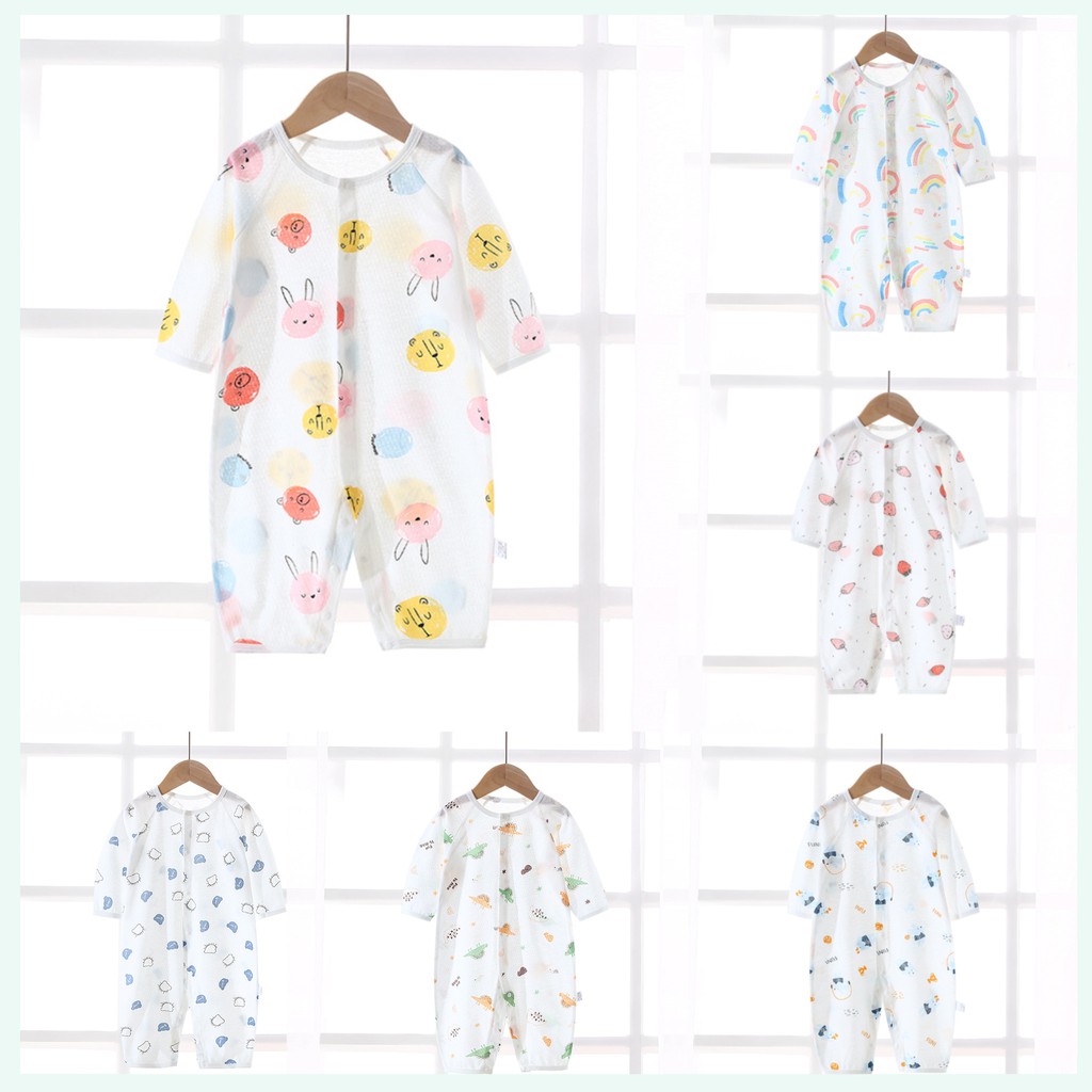 ชุดนอนเด็กอ่อน บอดี้สูท ผ้าโปร่งบาง เย็นสบาย สำหรับเด็กขี้ร้อน บอดี้สูทแขนยาวขายาว C นุ่มนิ่ม ใส่สบาย ชุดเด็กผ้าตาข่าย