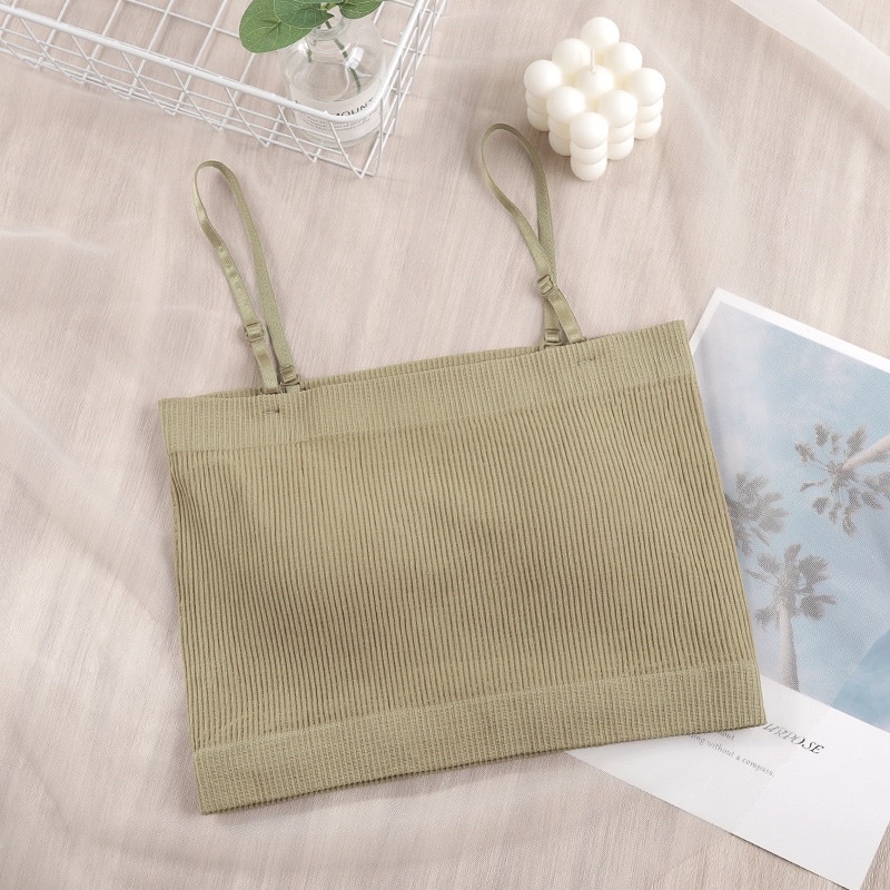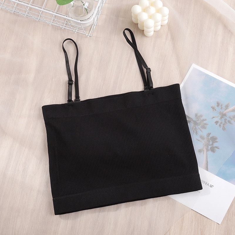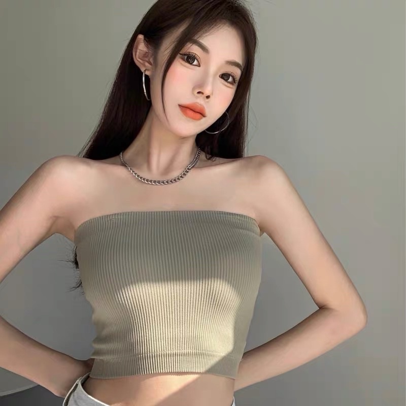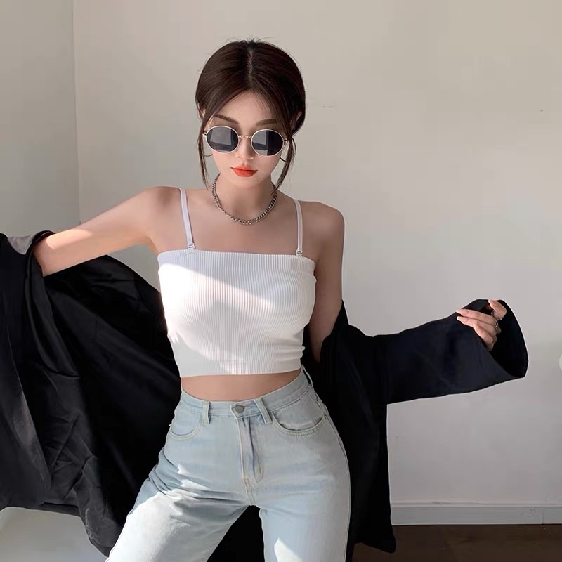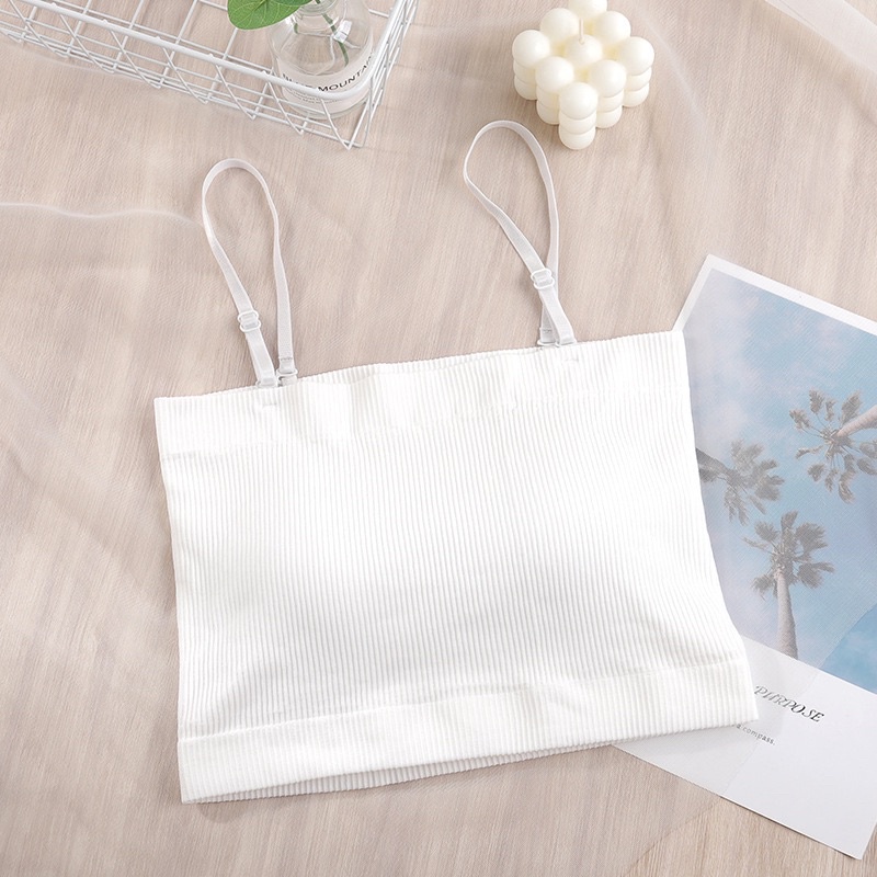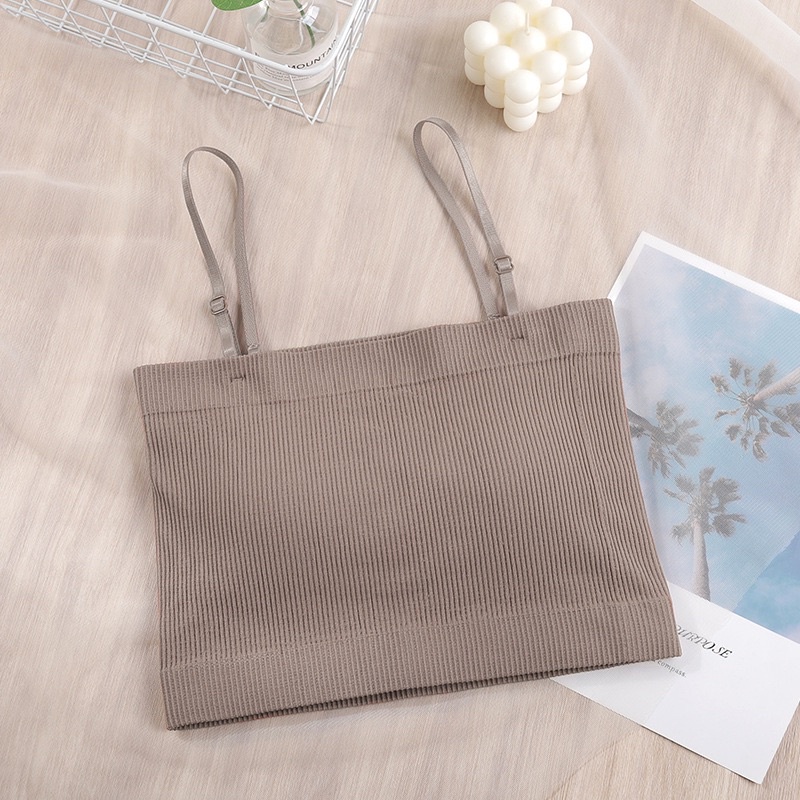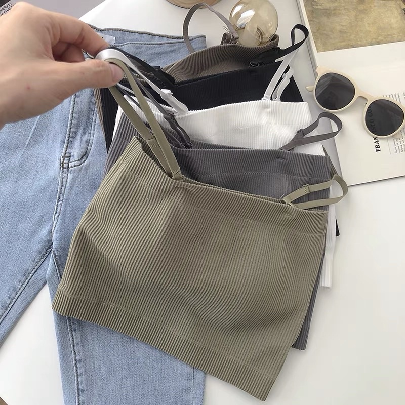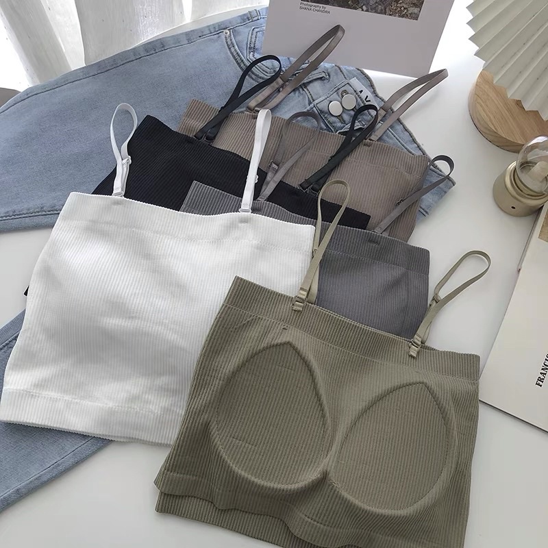CHERISH (พร้อมส่ง) D22 เสื้อสายเดี่ยว เกาะอก แฟชั่นบราผ้าร่อง มีฟองน้ำถอดได้ รอบอก 30-34นิ้ว รัดรูป ผ้านุ่ม คุณภาพดีมาก