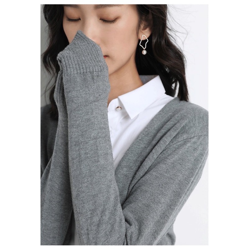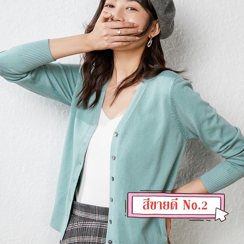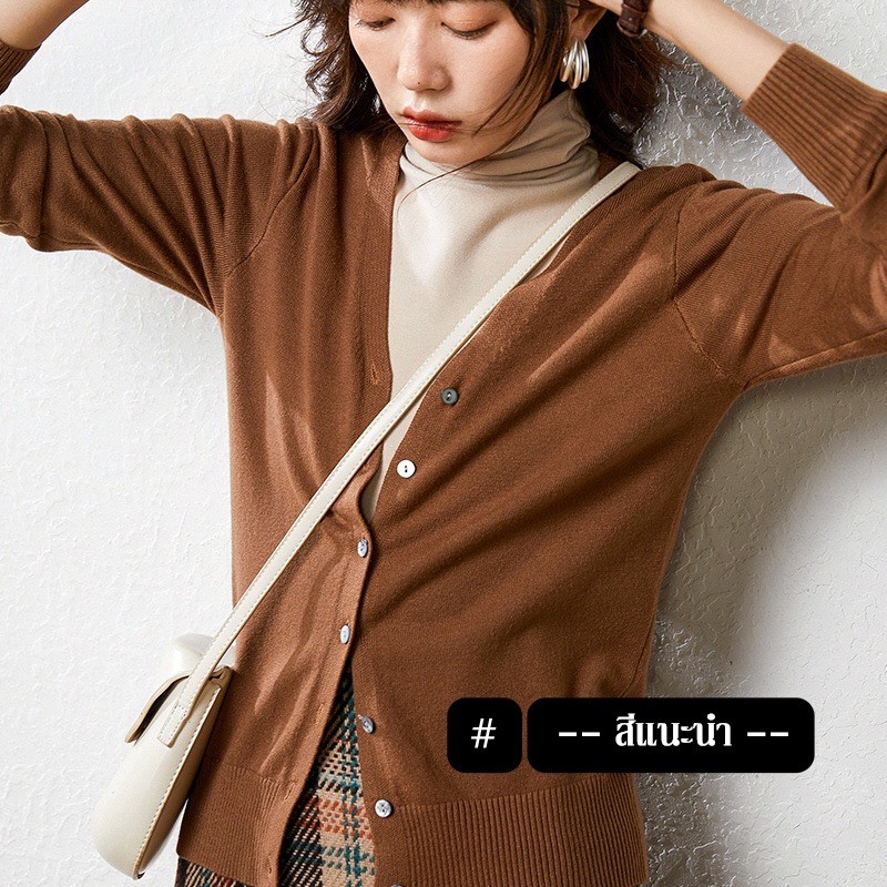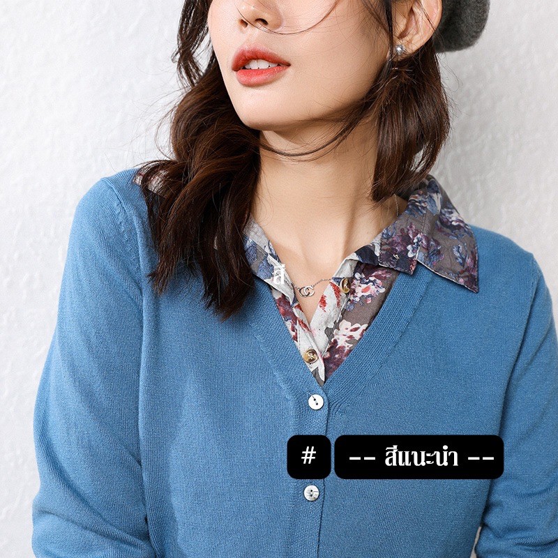 CHERISH (V: คอวี) มีไซส์ ส่งด่วน คาร์ดิแกน แขนยาว เสื้อคลุมไหมพรม กันหนาว คอวี ผู้ชาย ผู้หญิง สาวอวบใส่ได้
