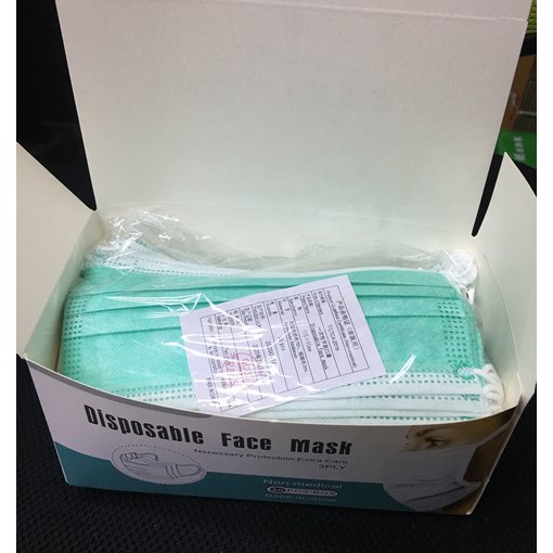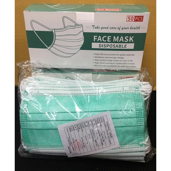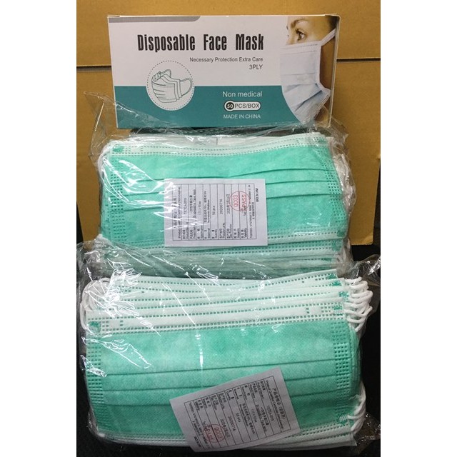 หน้ากากสีเขียว 3 ชั้น ป้องกันฝุ่นละอองเเละเชื้อโรค 1 กล่องมี 50 ชิ้น*** สินค้าพร้อมส่งค่า***