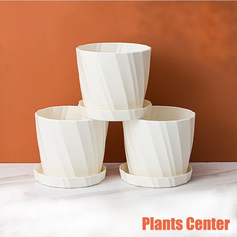PlantsCenter T012กระถางต้นไม้ สไตล์มินิมอล พร้อมถาดรองกระถาง วัสดุเกรดพรีเมียม ส่งจากไทยรวดเร็วทันใจ
