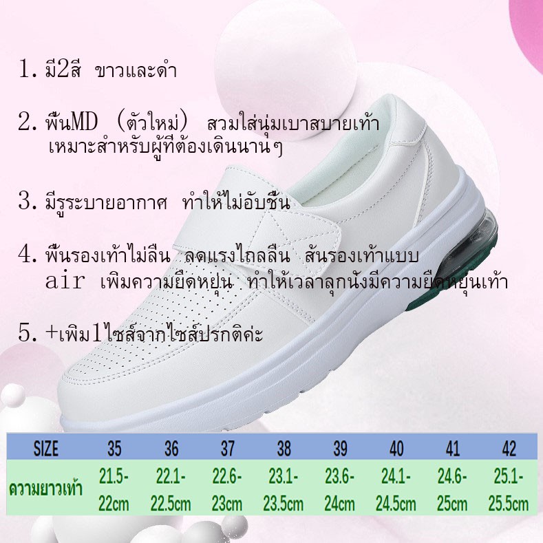 รองเท้าพยาบาลสีขาว มี2สีดำและขาว สวมใส่เบาสบายเท้า ส่งจากไทยไม่ต้องรอนาน รุ่น8066 รุ่นนี้ต้องบวกเพิ่ม 1 ไซส์