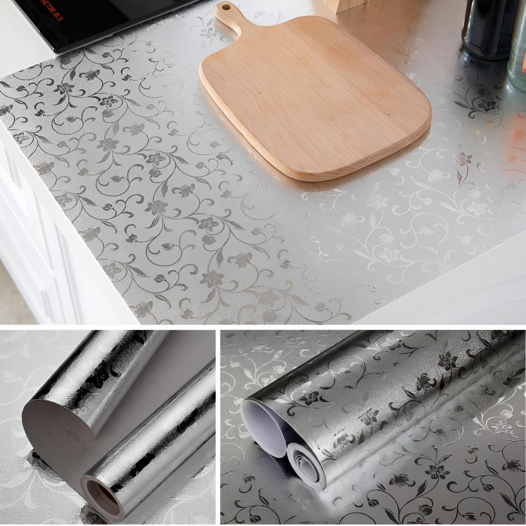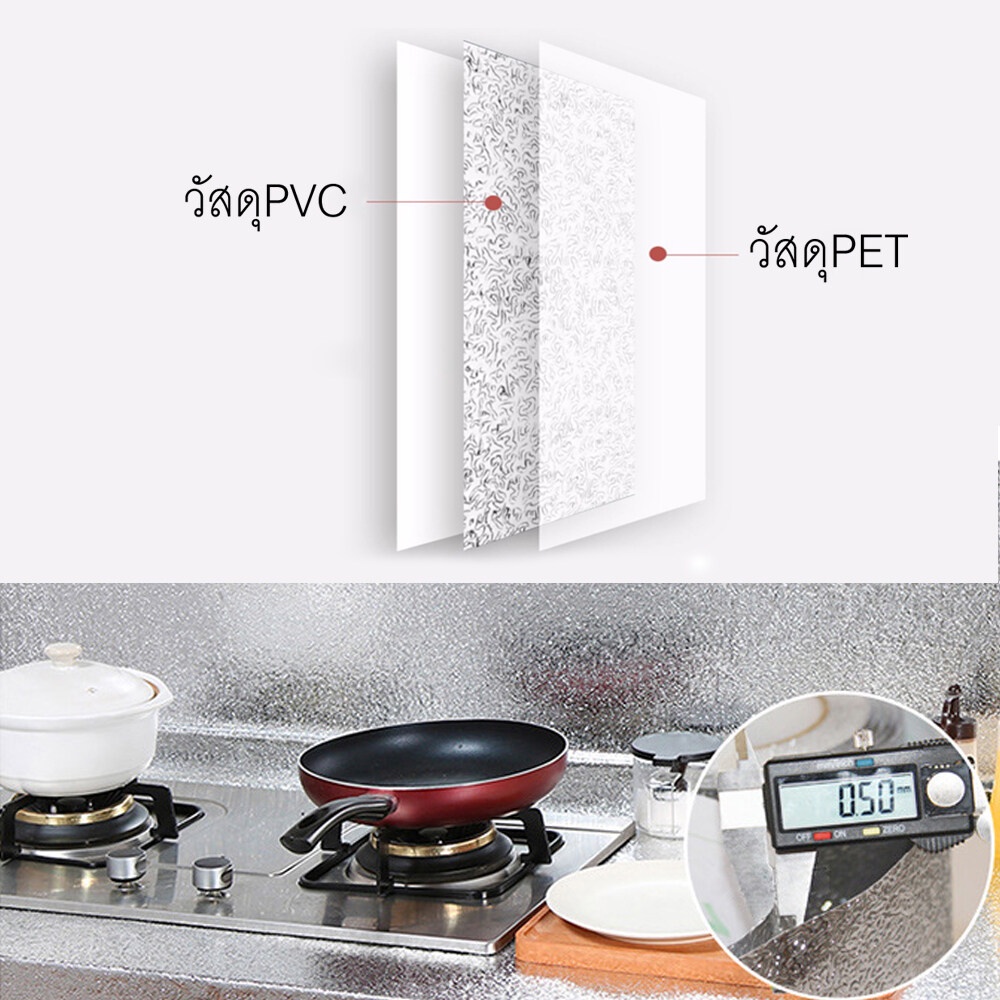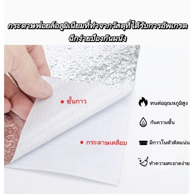 สติกเกอ ร์ ติดผนัง ห้องครัว ของใช้ในครัว สติ๊กเกอร์ฟอยด์อลูมิเนียม กันน้ำมันทอดกระเด็น ติดผนังในครัว