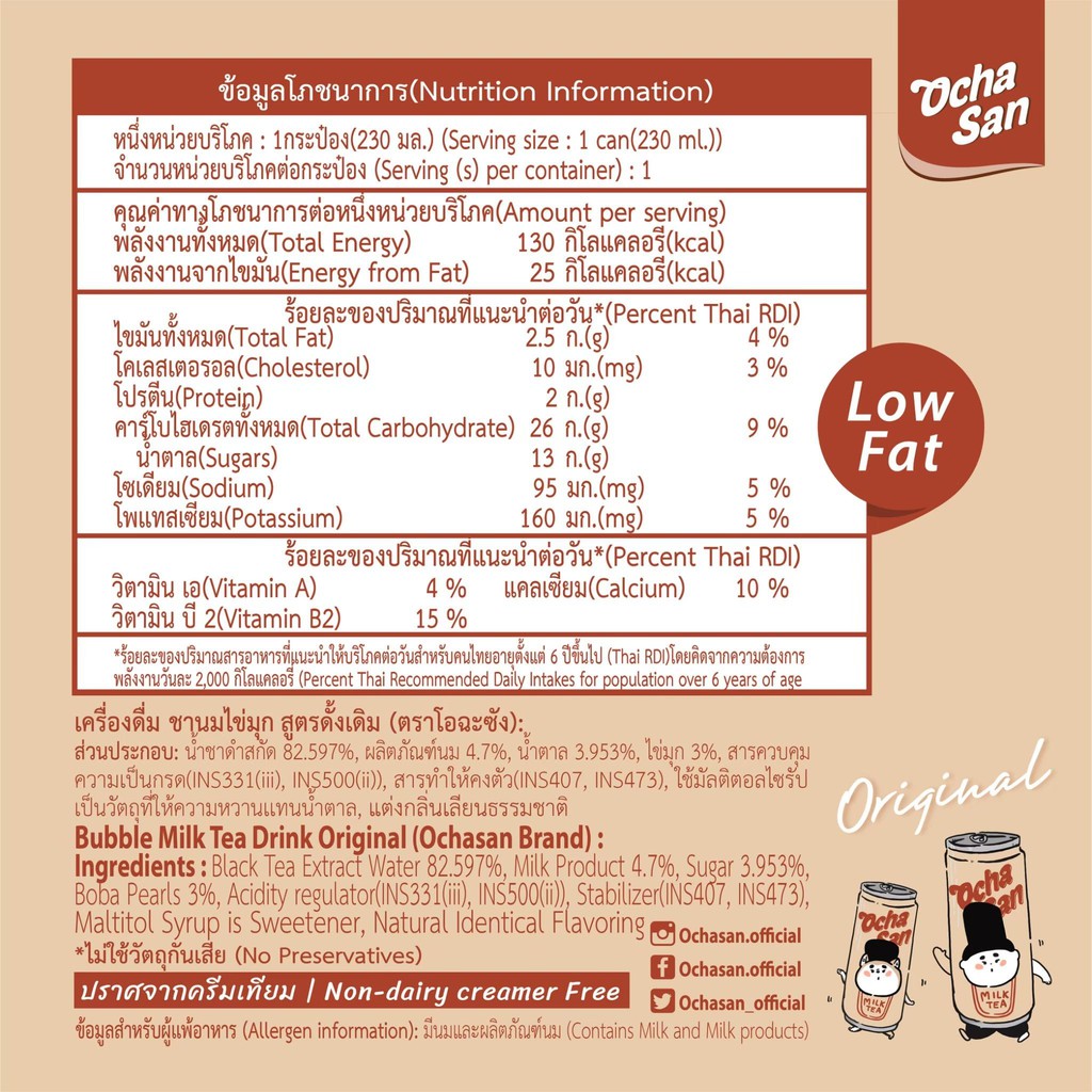 ชานมไข่มุกโอฉะซัง (ขนาด 230 มล.) สูตรดั้งเดิม 12 กระป๋อง