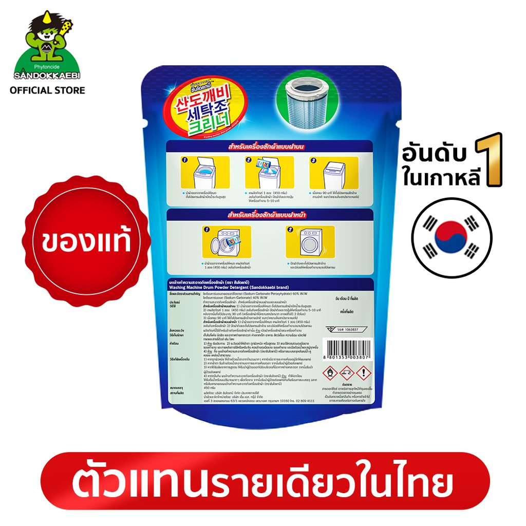 [ ของแท้ 100% เจ้าเดียวในไทย ] Sandokkaebi ซันโดแกบิ ผงล้างถังเครื่องซักผ้า ขนาด 450 กรัม แพ็ค x1