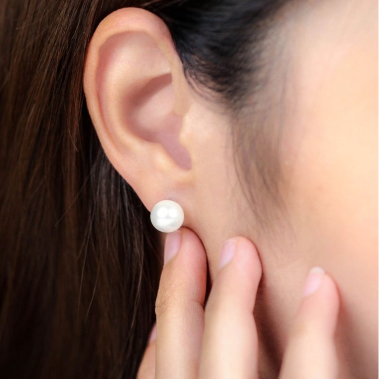 AURORA ต่างหูมุกเเท้ 8 mm. Bright Pearl Collection รุ่น 2 DEPL005
