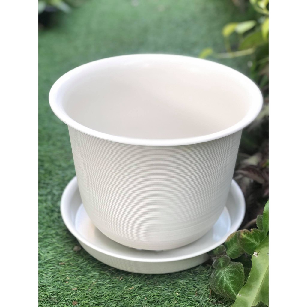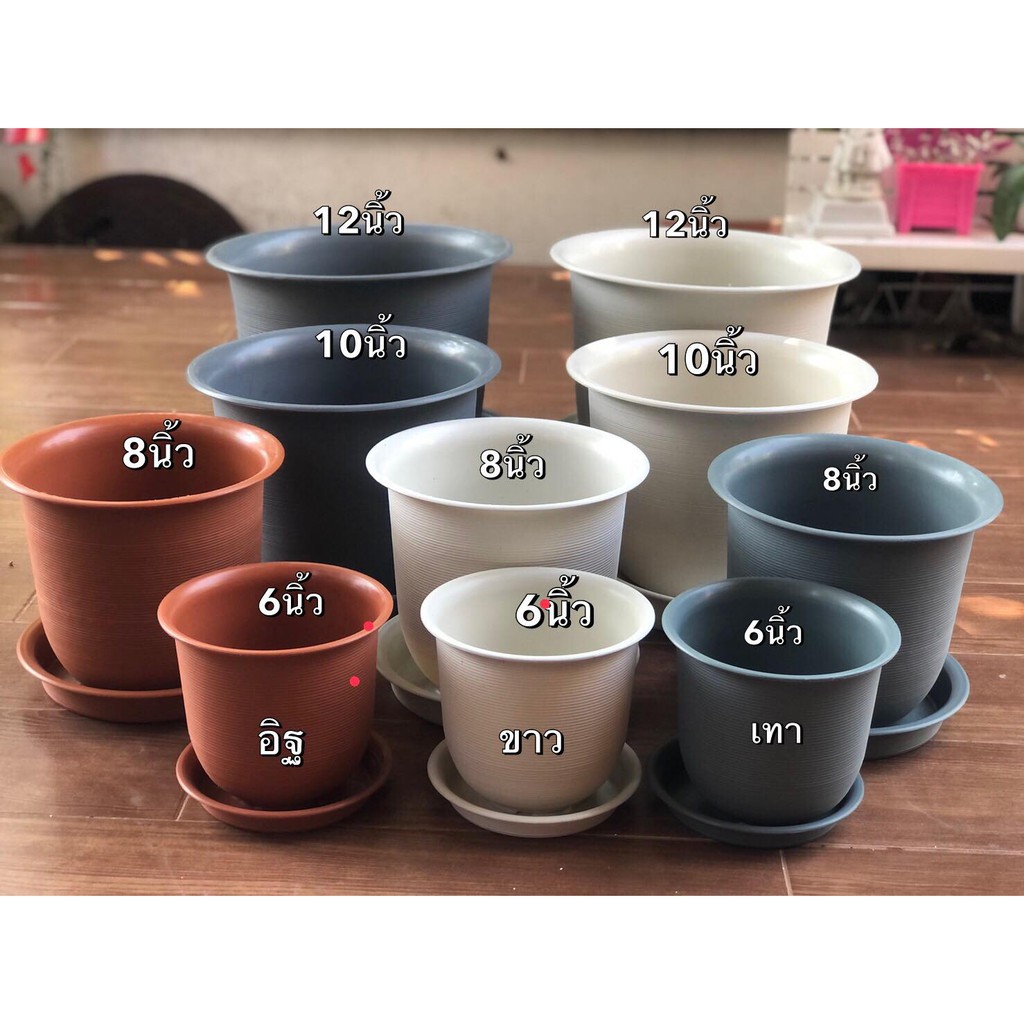 กระถางต้นไม้สีขาว แบบหนาขนาด6นิ้ว 8นิ้ว 10นิ้ว 12นิ้ว(minimal)พร้อมจานรอง