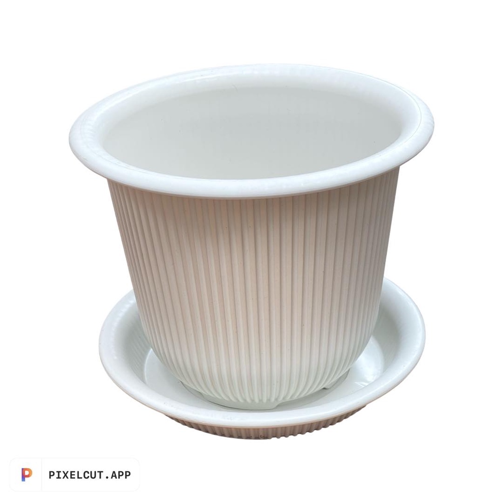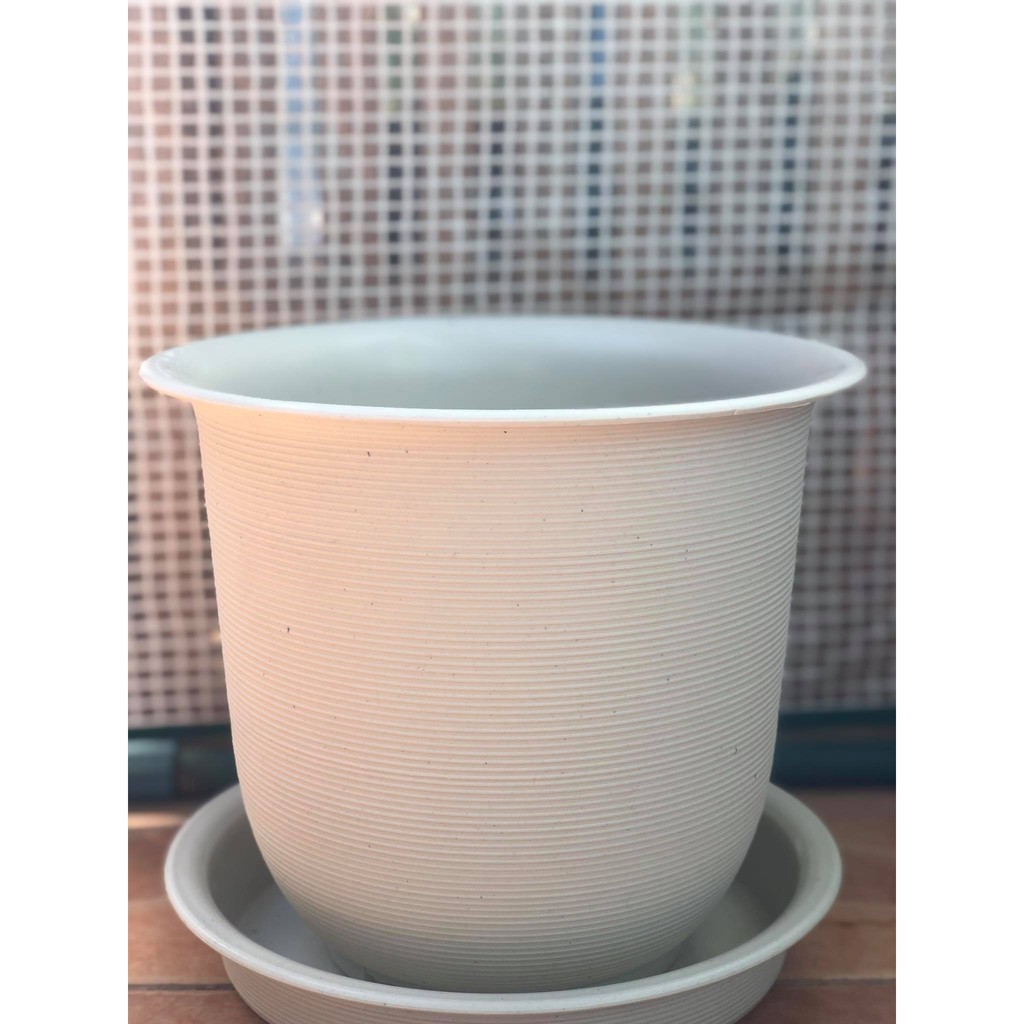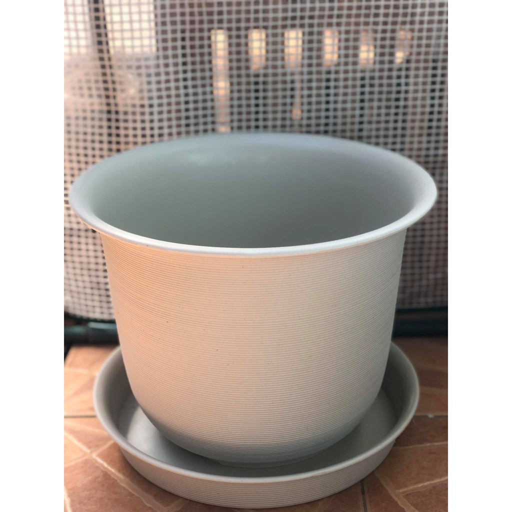 กระถาง12นิ้ว ต้นไม้ 10นิ้ว [ กระถางมินิมอล+จานรอง ] minimal สีขาว