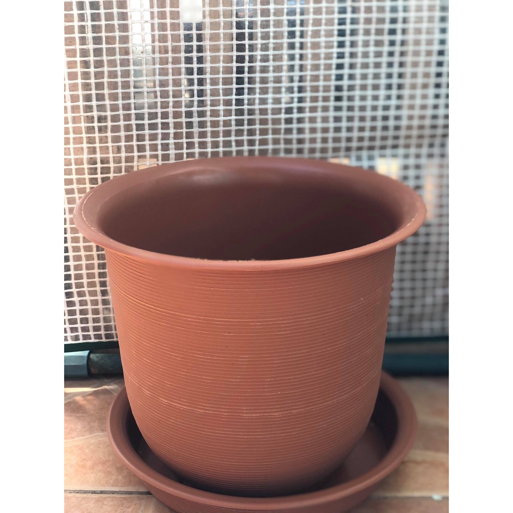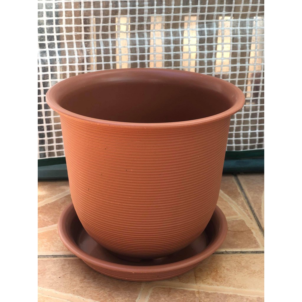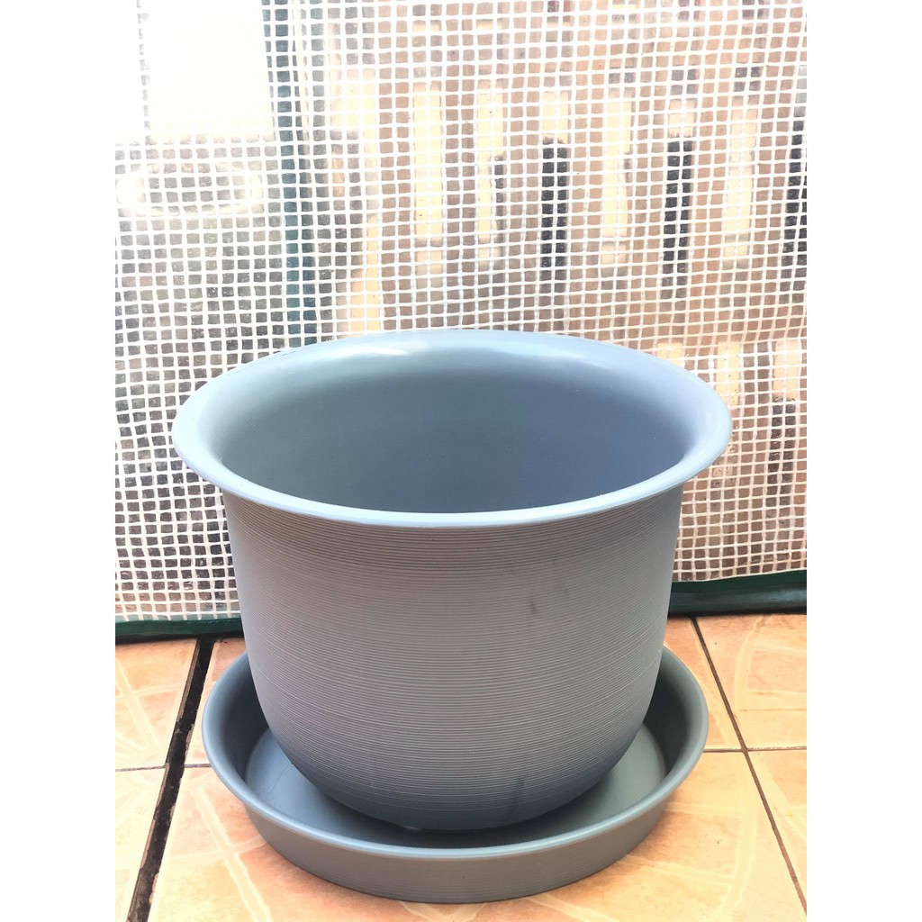 กระถาง12นิ้ว ต้นไม้ 10นิ้ว [ กระถางมินิมอล+จานรอง ] minimal สีขาว