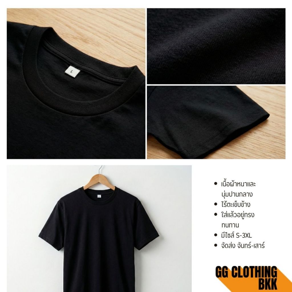 GG Clothing BKK เสื้อยืด เสื้อเปล่า(สีดำ)คอกลมผ้าcotton100%C20 เนื้อหนา มี ไซส์ S/M/L/XL/2XL/3XL