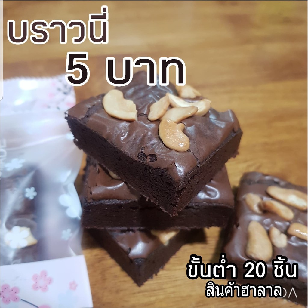 บราวนี่ เม็ดมะม่วงหิมพานต์ ขายส่ง 5 บาท ขั้นต่ำ 20 ชิ้น ผลิตใหม่ทุกวัน ขนม เค้ก