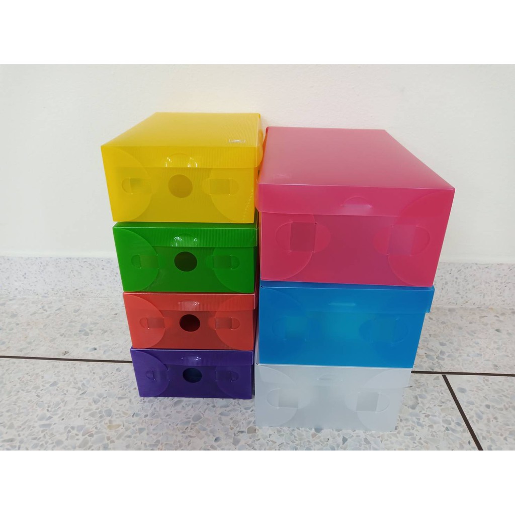 กล่องรองเท้าพลาสติก กล่องเก็บของ พับได้ มี 6 สี ฟลามิงโก้ RN-899