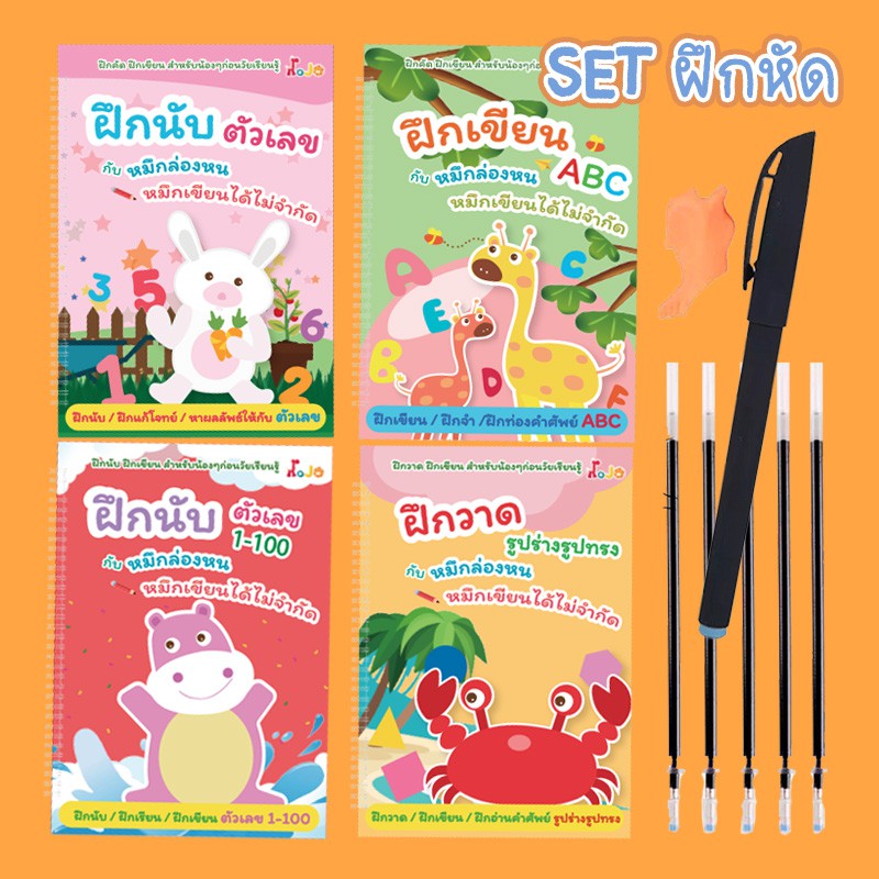 หนังสือฝึกเขียน สมุดคัดลายมือ สมุดหัดเขียน ฝึกเขียน ก.ไก่ ฝึกวาดรูป คณิตศาสตร์ นับเลข ปากกาล่องหน