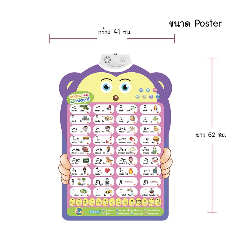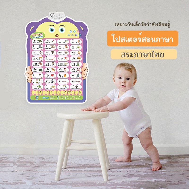 โปสเตอร์พูดได้ ก.ไก่ สระ ภาษาไทย กดแล้วมีเสียง มีเพลง เล่นเกมส์ได้ ของเล่นเด็ก เสริมพัฒนาการ