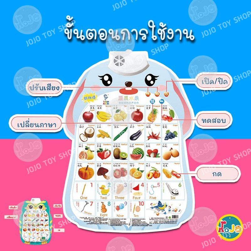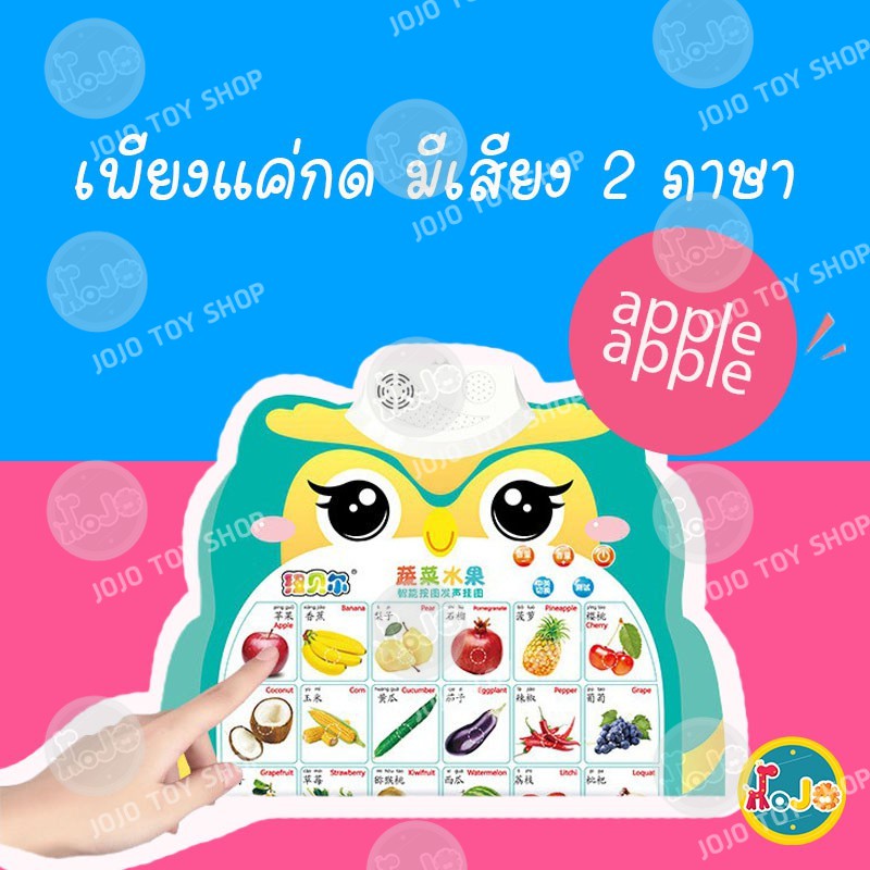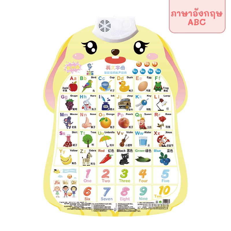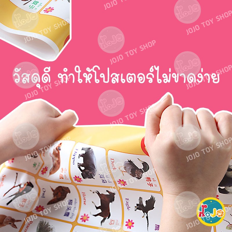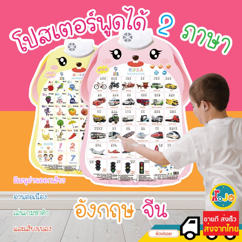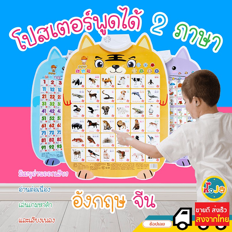 โปสเตอร์พูดได้ 2 ภาษา จีน -อังกฤษ สัตว์ ABC สี ผลไม้ กดแล้วมีเสียง มีเพลง เล่นเกมส์ได้