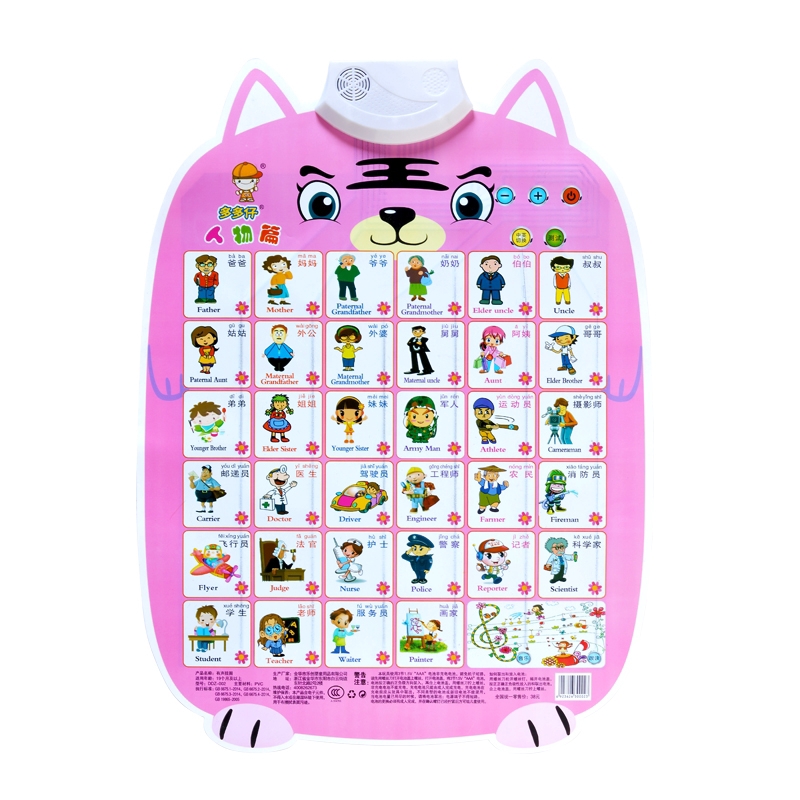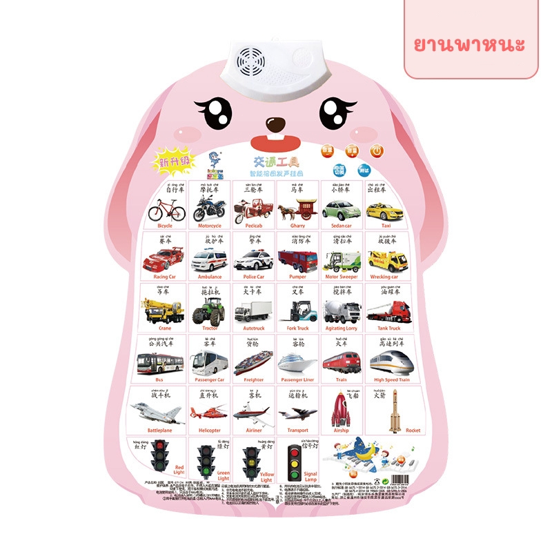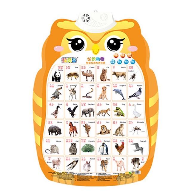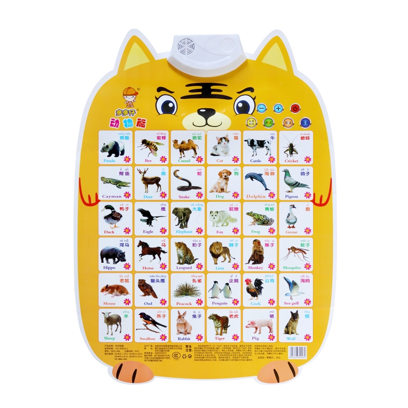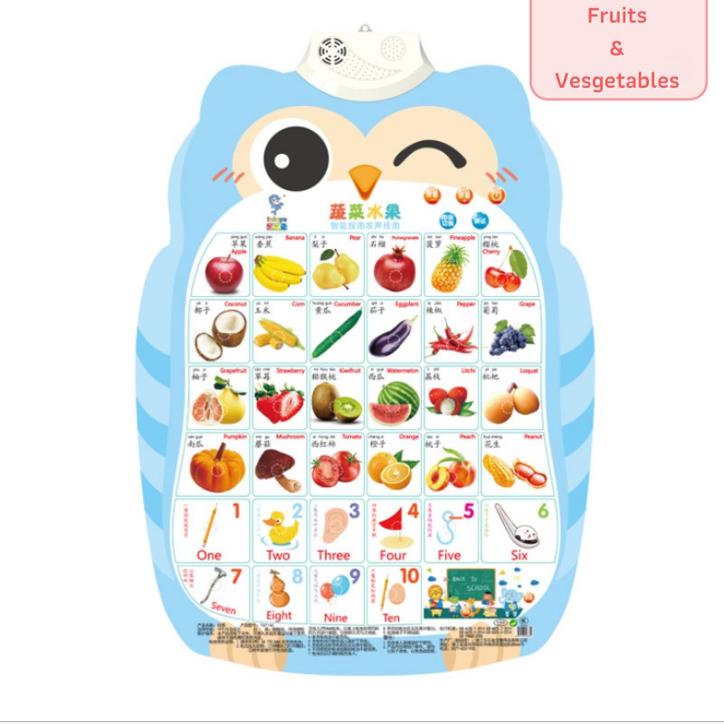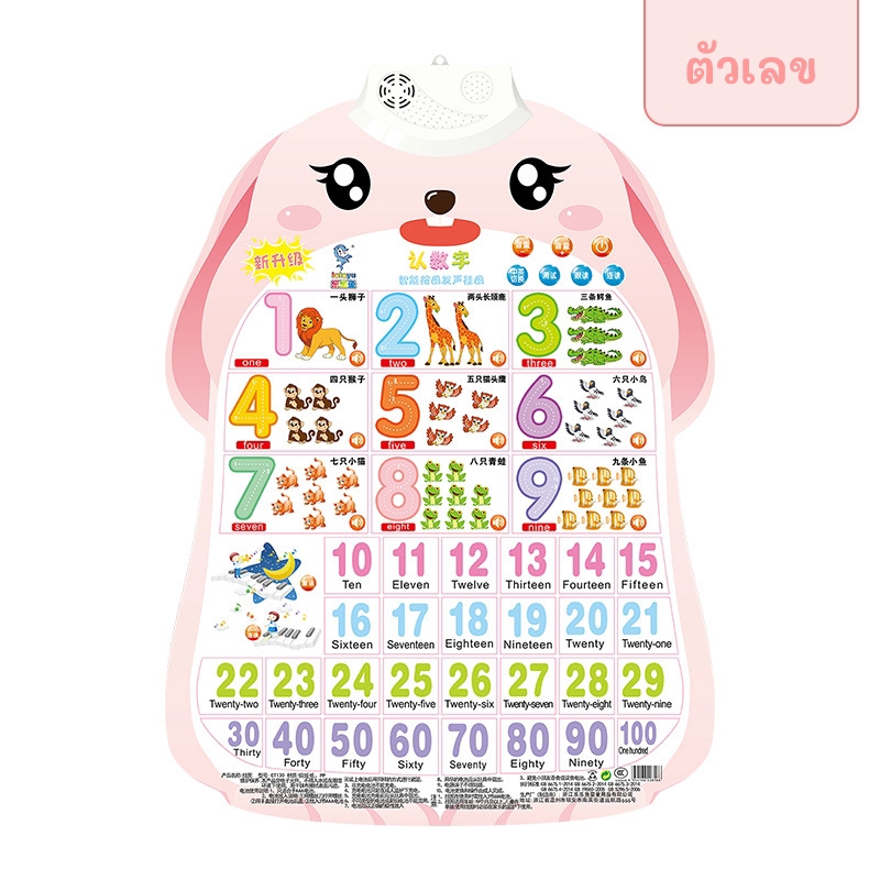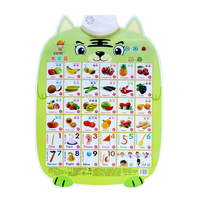 โปสเตอร์พูดได้ 2 ภาษา จีน -อังกฤษ สัตว์ ABC สี ผลไม้ กดแล้วมีเสียง มีเพลง เล่นเกมส์ได้