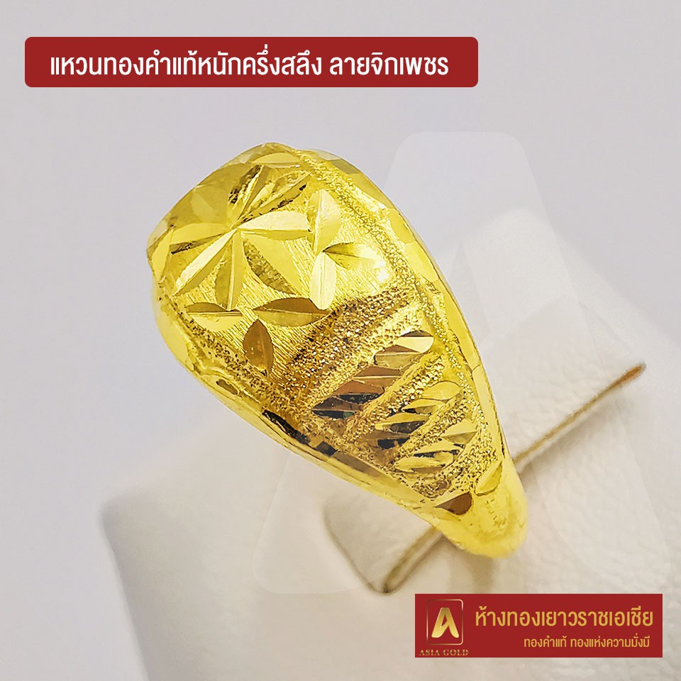 Asiagold แหวนทองคำแท้ 96.5 % หนัก ครึ่งสลึง ลายจิกเพชร