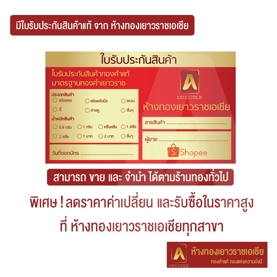 Asiagold สร้อยคอทองคำแท้ 96.5 % หนัก 1 สลึง ลายคตกริชทับลาย