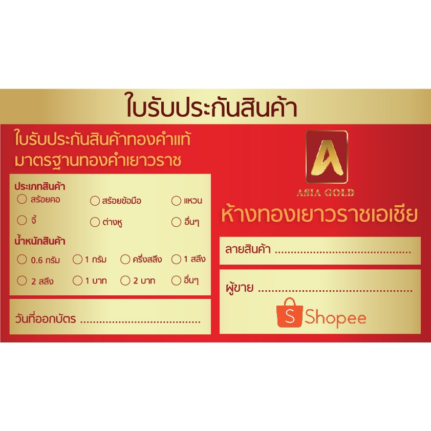 Asiagold แหวนทองคำแท้ 96.5 % หนัก 1 สลึง ลายหัวใจ