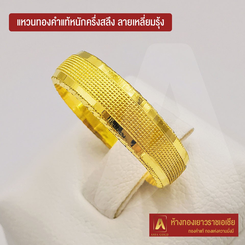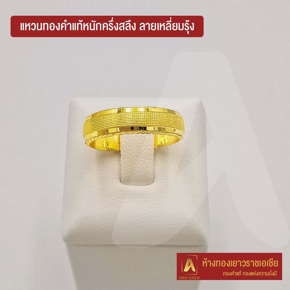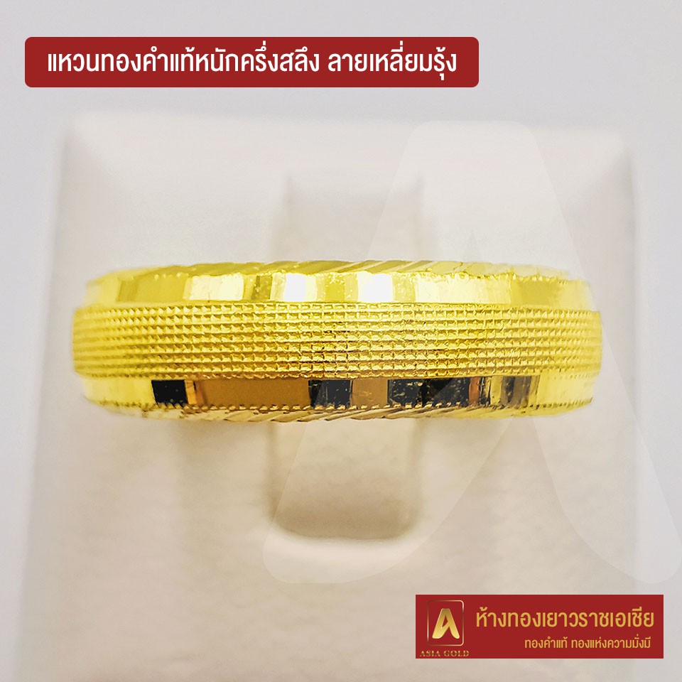 Asiagold แหวนทองคำแท้ 96.5 % หนัก ครึ่งสลึง ลายเหลี่ยมรุ้ง