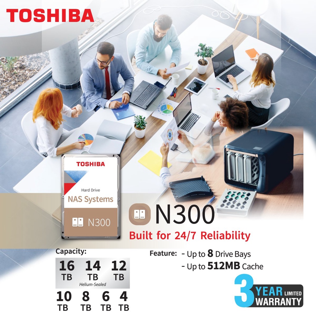 Toshiba INT NAS HDD (14TB) (ฺBOX) 3.5" SATA 3.5 รุ่น (N300)TSB-HDWG51EAZSTA:7200RPM C/B 512MB Internal Harddisk (ฺBOX)