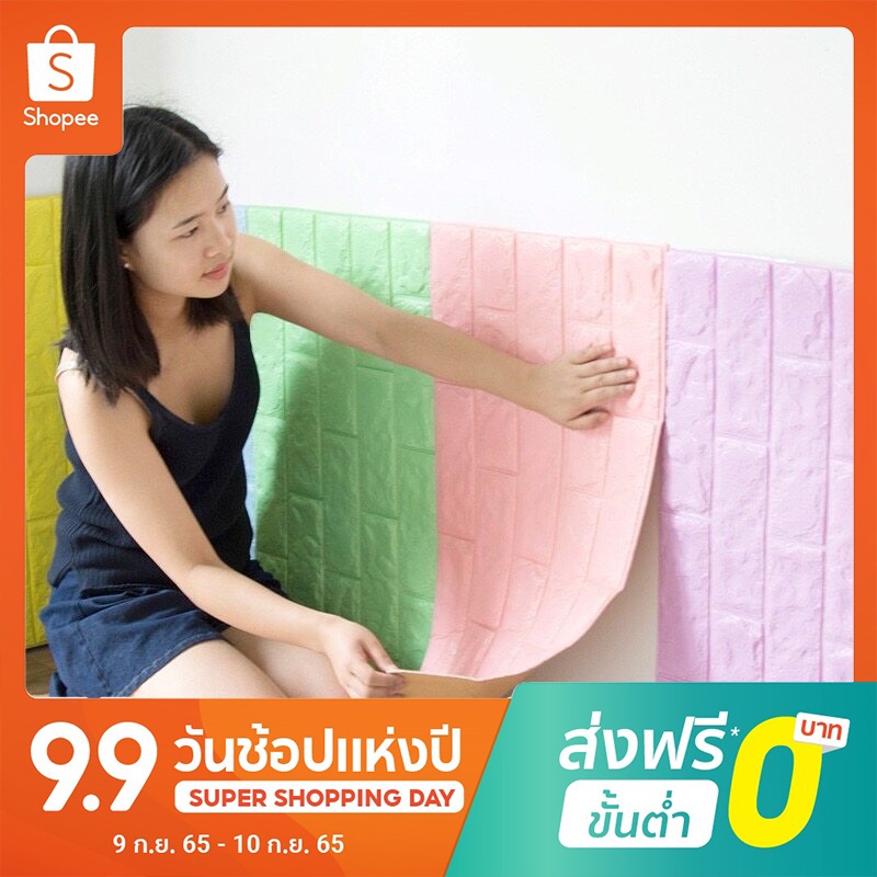 H106 วอลเปเปอร์ติดผนัง 3 มิติ แผ่นใหญ่ มีกาวในตัว สติ๊กเกอร์ติดผนัง วอลเปเปอร์ลายอิฐ Wallpaper 3D