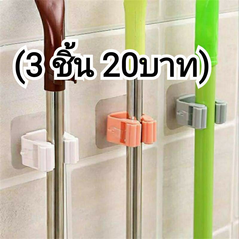 ที่เก็บไม้กวาด ไม้ถูพื้น แบบไม่ต้องเจาะผนัง (3 ชิ้น 20บาท)