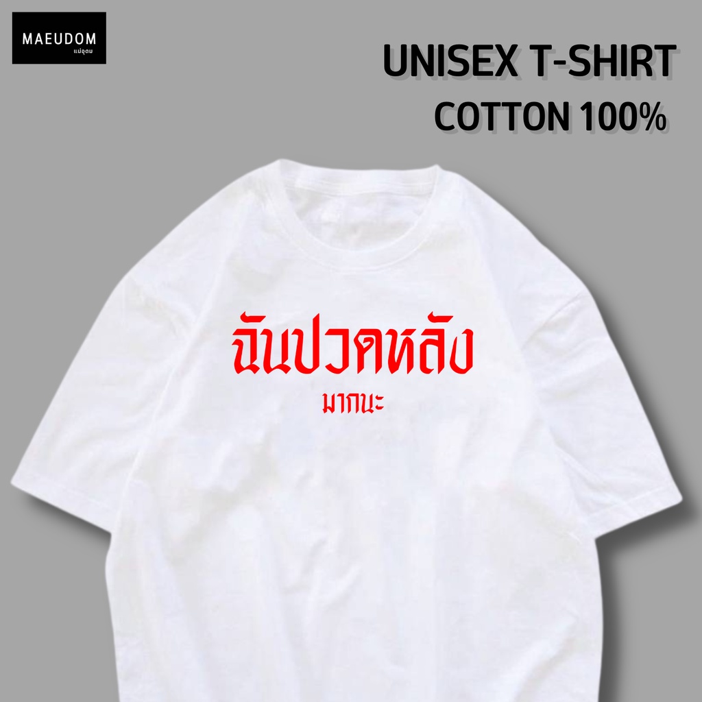 ซื้อ 5 ฟรี 1 กระเป๋าผ้า เสื้อยืด ฉันปวดหลัง มากนะ ผ้า Cotton 100% และ เนื้อผ้า Signature เฉพาะแบรนด์ MAE UDOM