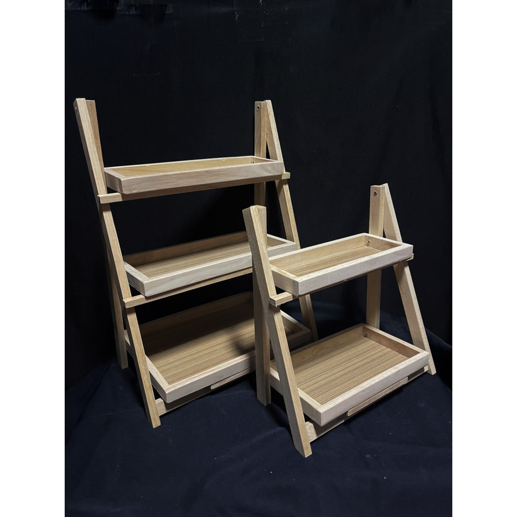 ชั้นไม้พับได้ วางของ สำหรับวางต้น ไม้สัก ตกแต่งบ้าน โชว์สินค้า ชั้นวางตกแต่ง พับเก็บได้