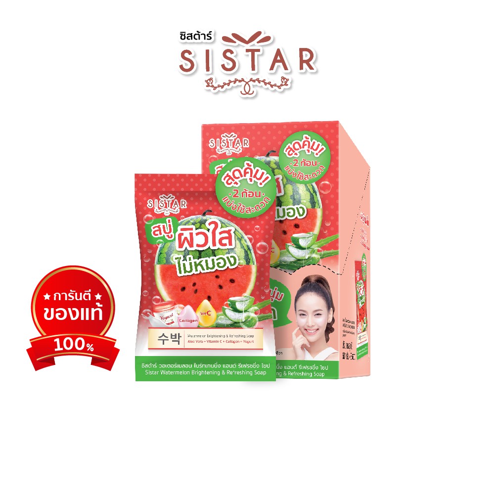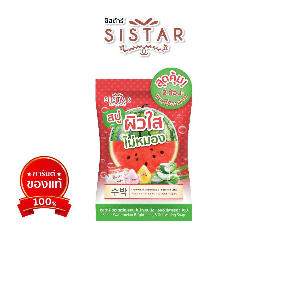 Sistar Official ซิสตาร์ วอเตอร์เมลอน ไบ ร์ทเทนนิ่ง แอนด์ รีเฟรชชิ่ง โซป สบู่แตงโม หน้าใส (SST11)