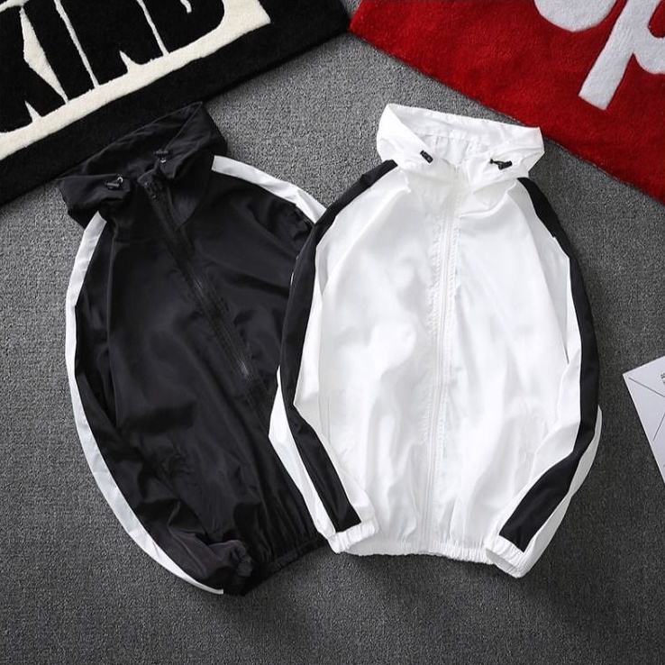 🔥🔥เสื้อคลุมแขนยาว สไตล์เกาหลี กันแดด กันลม มีฮู้ด✨✔แต่งแถบด้านข้าง