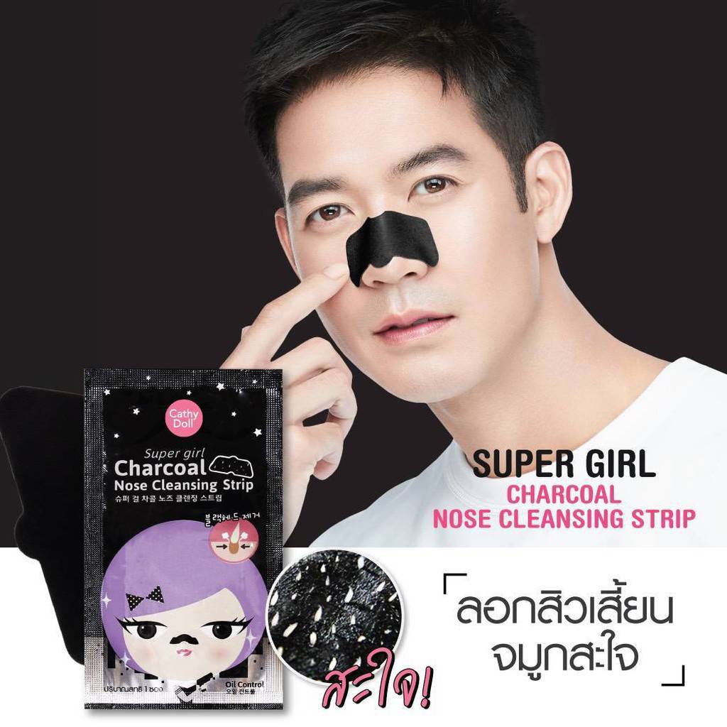 Cathy Doll Blackhead Black / โคลนลอกสิวเสี้ยนหน้า / Super Girl Charcoal Nose แผ่นลอกสิวเสี้ยนจมูก