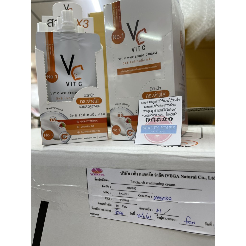 [ถูก&แท้] รัชชา ครีมวิตซีน้องฉัตร แบบซอง 🍊RATCHA Vit C Whitening Cream🍊 1ซอง บรรจุ 7กรัม