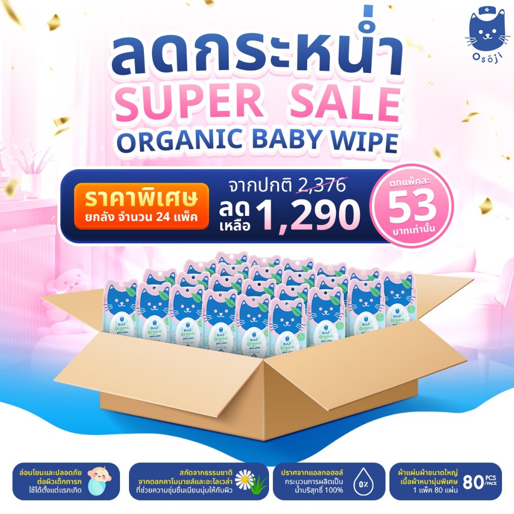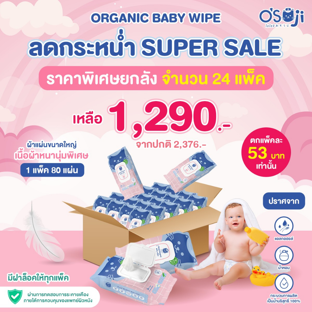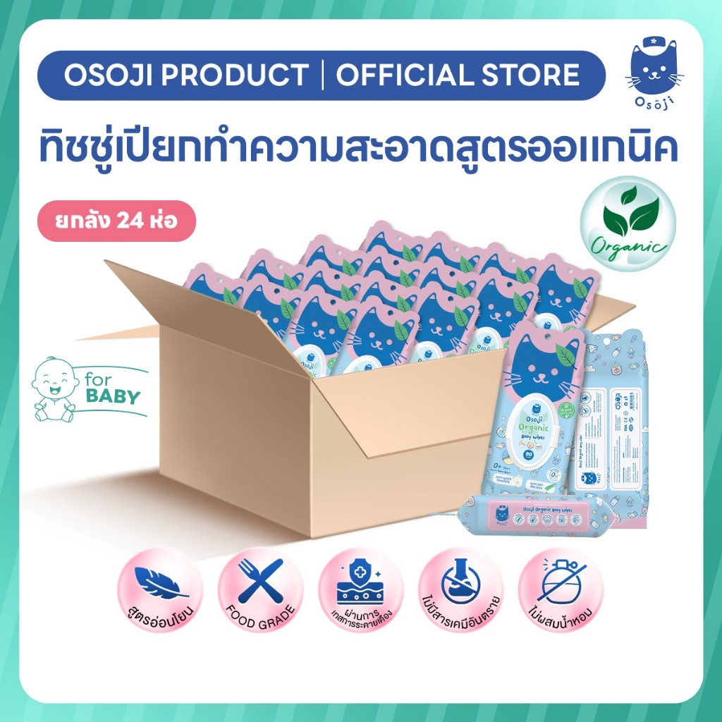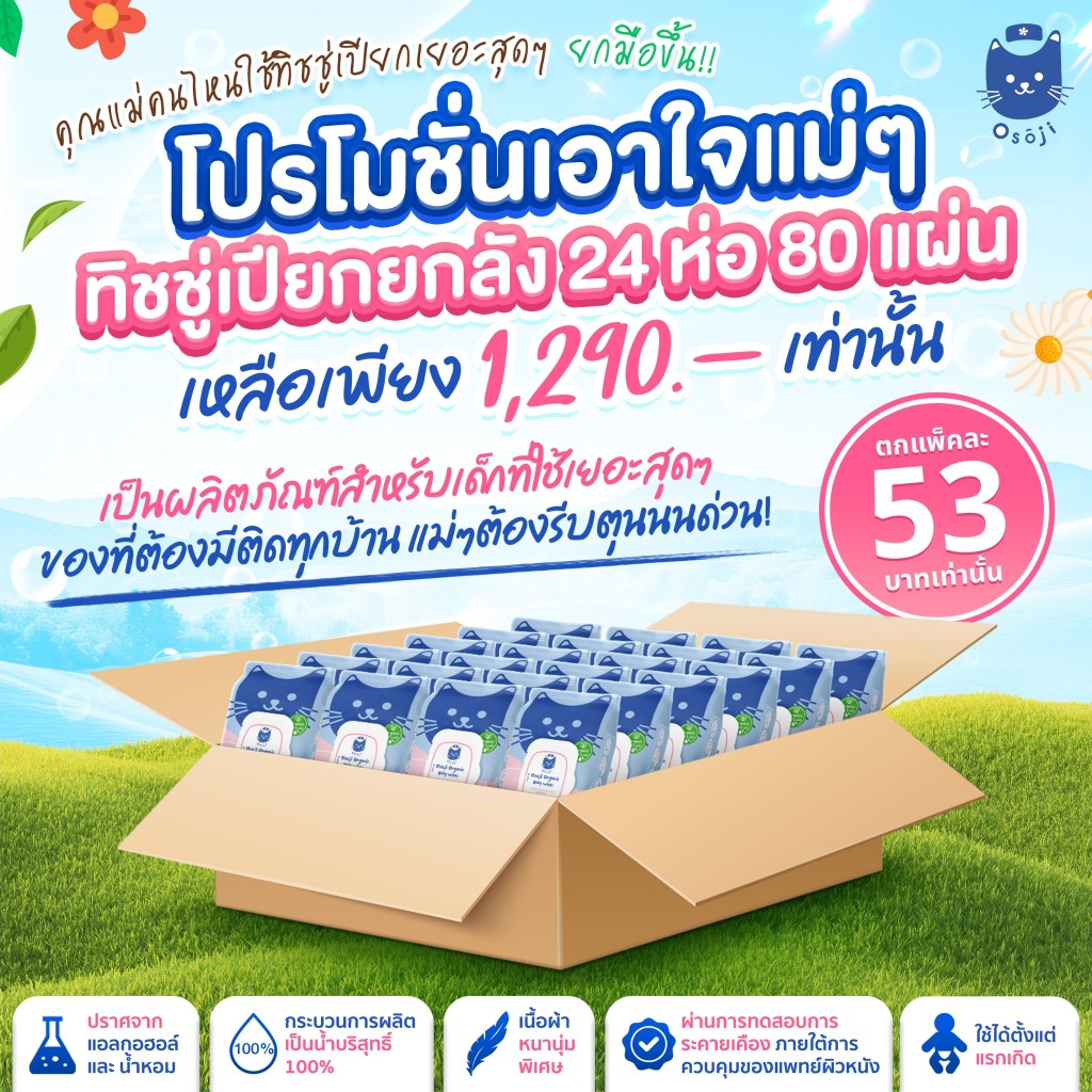 🩵ทิชชู่เปียกทำความสะอาดสูตรออแกนิก แพคละ 80 แผ่น (ยกลัง 24 ห่อ)