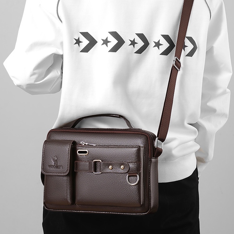 Laber Lee ใหม่ กระเป๋าสะพายไหล่แฟชั่น กระเป๋าถือ หนัง PU สไตล์นักธุรกิจ สำหรับผู้ชาย