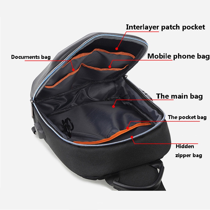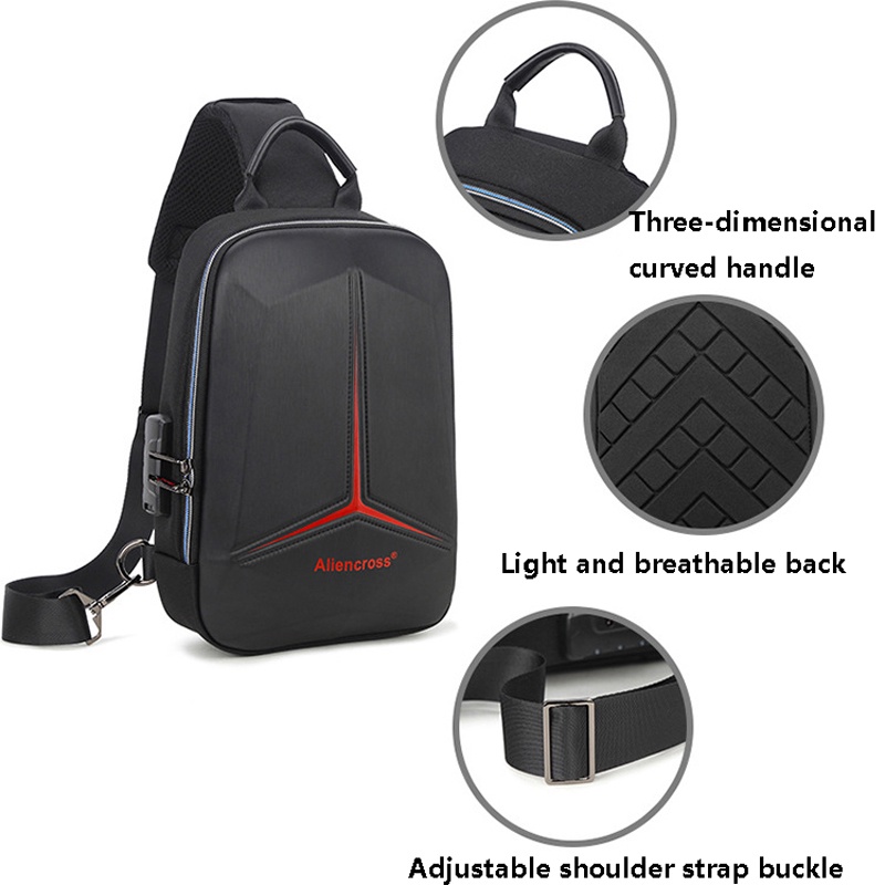Laber Lee กระเป๋าคาดอกอเนกประสงค์ พีวีซี ป้องกันขโมย พร้อมพอร์ต USB สำหรับผู้ชาย