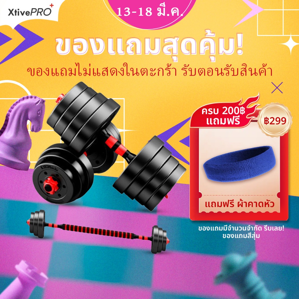 XtivePRO ชุดดัมเบล ปรับน้ำหนักได้ 20-40 kg พร้อมแกนบาร์เบล ยกน้ำหนัก สร้างกล้ามเนื้อ Adjustable dumbbell barbell