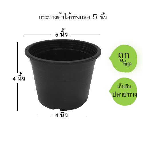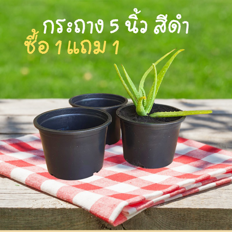 37POTS ซื้อ 1 แถม 1 กระถางต้นไม้ ขนาด 5 นิ้ว ผิวเรียบ กระถางต้นไม้ ปากกลม ขนาด 5 นิ้ว สีดำ