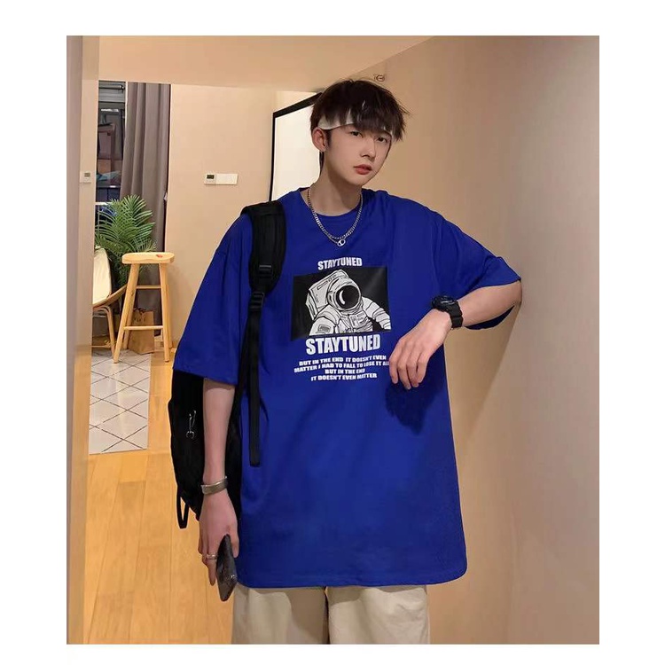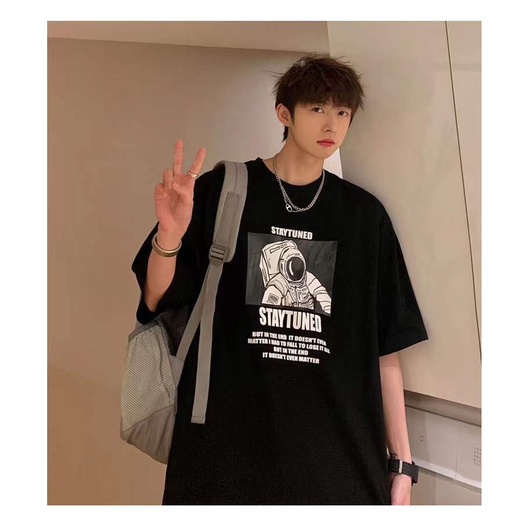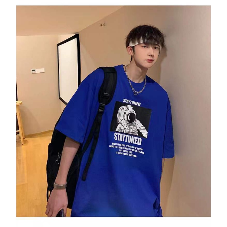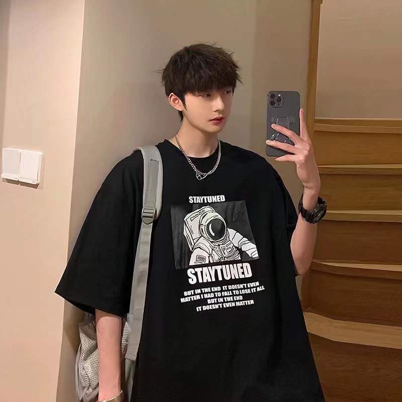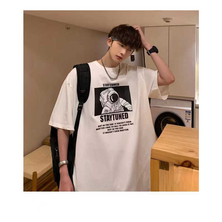 TS MEN เสื้อยืดคอกลมแขนสั้น เสื้อยืดผู้ชาย ทรงหลวม คุณภาพสูง(สีดำ สีขาว สีน้ำเงิน) รุ่น 0111