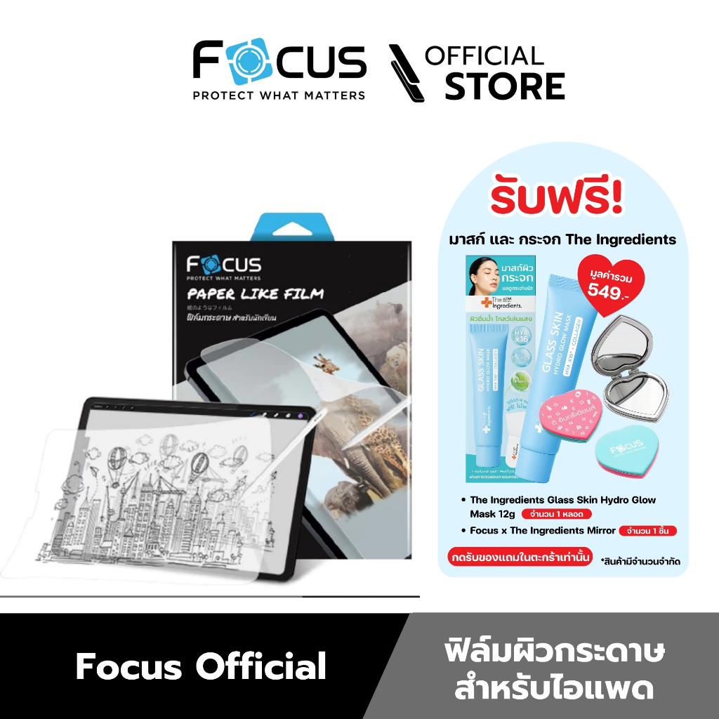 [Official] Focus ฟิล์มกระดาษสำหรับไอแพด Paper Like Film สำหรับไอแพด ทุกรุ่น - ฟิล์มโฟกัส PP LIKE FILM