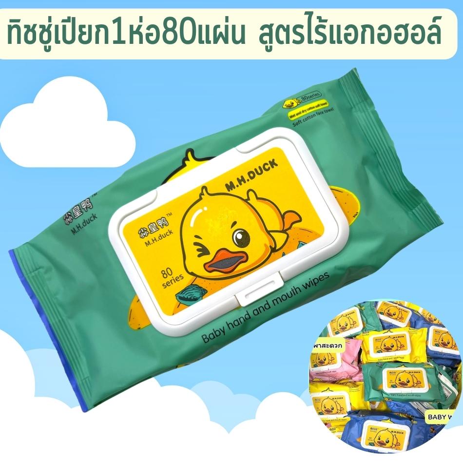 ทิชชู่ ทิชชู่เปียก ทิชชู่เปียกเป็ด สูตรไร้แอกอฮอล์ 1ห่อ 80แผ่น ใช้ง่ายได้คุ้ม ราคาประหยัด