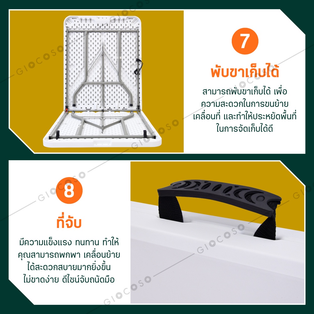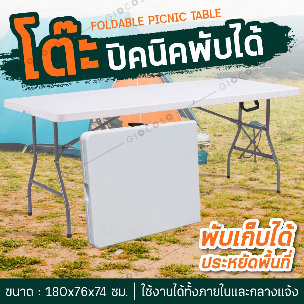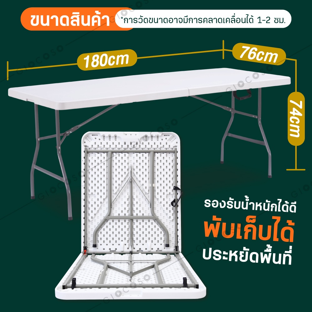 Folding Table โต๊ะพับ ขนาดใหญ่ 181x76x74 ซม. อเนกประสงค์ พกพาง่าย แคมป์ปิ้ง ปิคนิค สนาม รุ่น T8