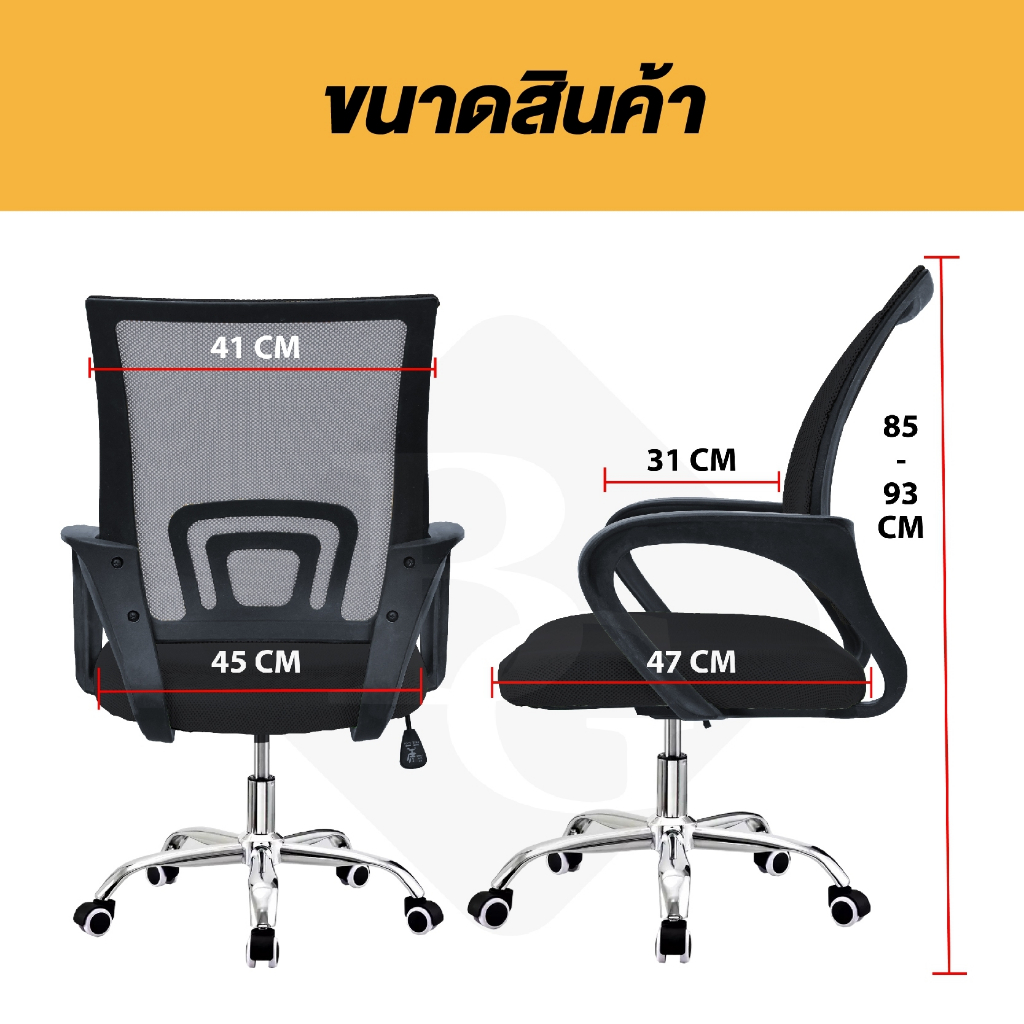 เก้าอี้ รุ่น B (Black) Office Chair โฮมออฟฟิศ สำนักงาน นั่งทำงาน ปรับสูงต่ำได้ เก้าอี้ BG