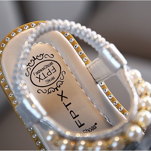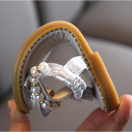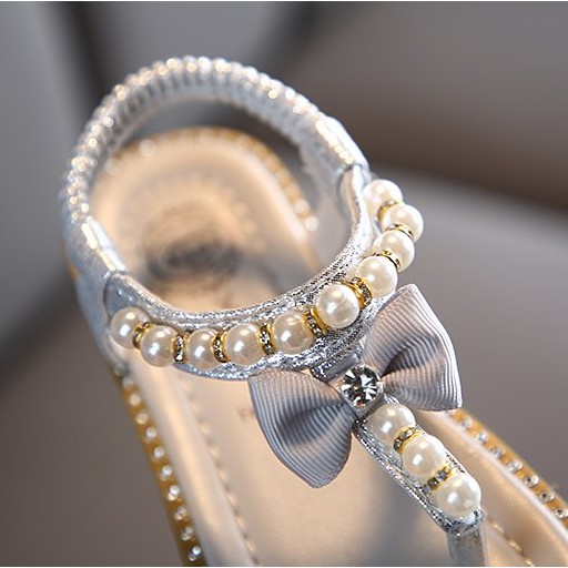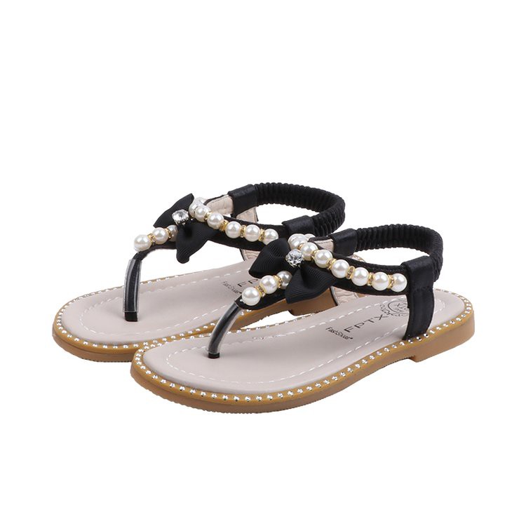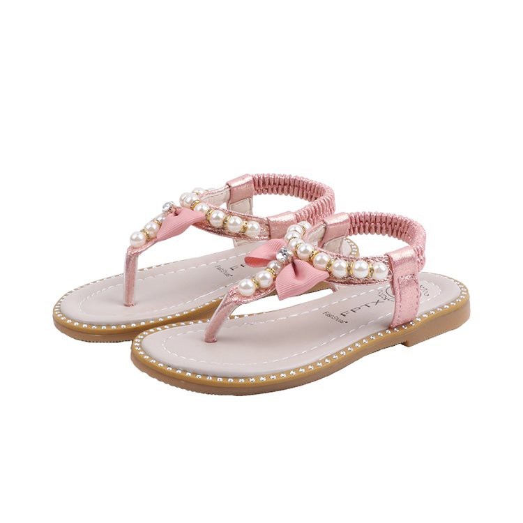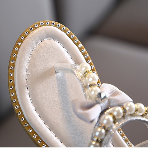 รองเท้าแตะ พื้นนิ่ม ประดับไข่มุก สวยงาม สําหรับเด็กผู้หญิง นักเรียน